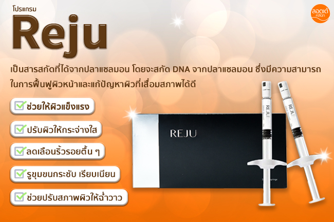 โปรแกรม รีจู (Reju) คือ เมโสหน้าใสในรูปแบบหนึ่งครับ ที่สามารถทำให้ผิวหน้าใสฉ่ำวาวแบบสาวเกาหลี ซ่อมแซมผิวที่เสื่อมสภาพ และกระตุ้นให้เกิดการสร้างเซลล์ผิวใหม่ รูขุมขนกระชับ หลุมสิวก็ดูตื้นขึ้น ลดความมันบนผิวหน้า พร้อมช่วยปรับให้ผิวกระจ่างใส ลดเลือนริ้วรอยก่อนวัยอันควร