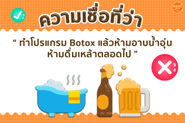 ความเชื่อที่ว่าทำ “ โปรแกรม Botox แล้วห้ามอาบน้ำอุ่น ห้ามดื่มเหล้าตลอดไป ”