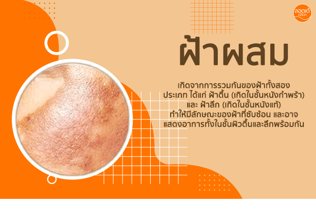 ฝ้าผสม : คือฝ้าที่เกิดจากการรวมกันของฝ้าทั้งสองประเภท ได้แก่ ฝ้าตื้น (เกิดในชั้นหนังกำพร้า) และ ฝ้าลึก (เกิดในชั้นหนังแท้) ทำให้มีลักษณะของฝ้าที่ซับซ้อน และอาจแสดงอาการทั้งในชั้นผิวตื้นและลึกพร้อมกัน