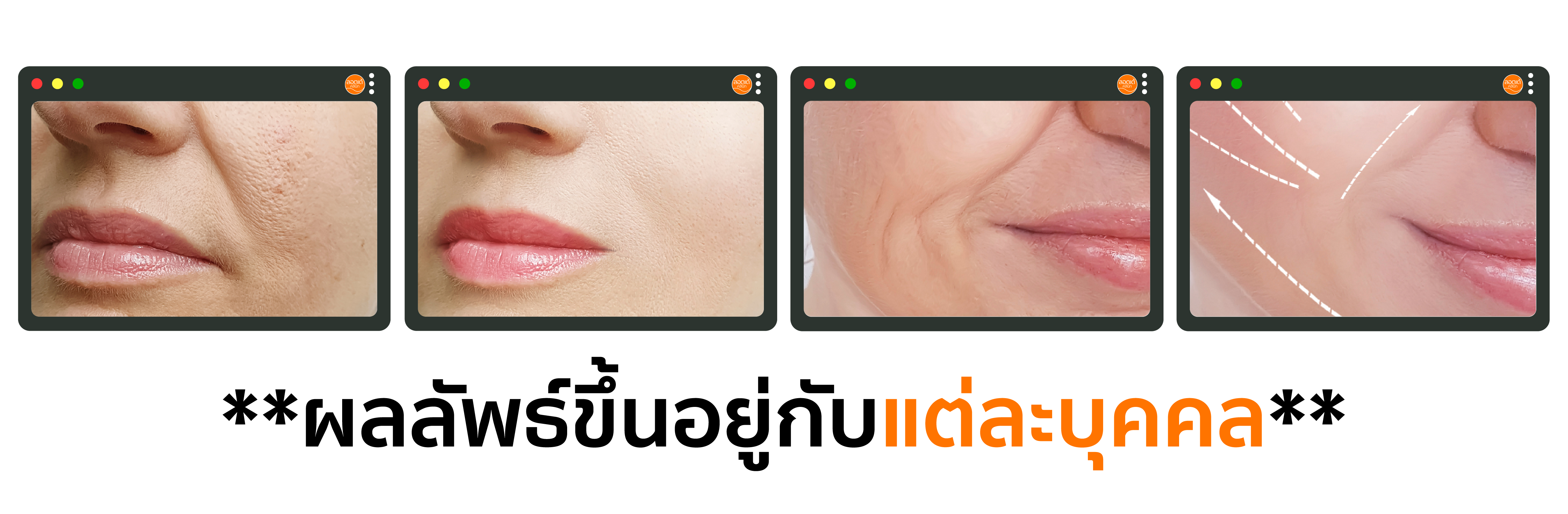 ริ้วรอยตื้น ๆ จะเริ่มลดลง ผิวดูสดใสขึ้น และดูอ่อนเยาว์โดยไม่ต้องพึ่งโปรแกรม Filler หรือ โปรแกรม Botox