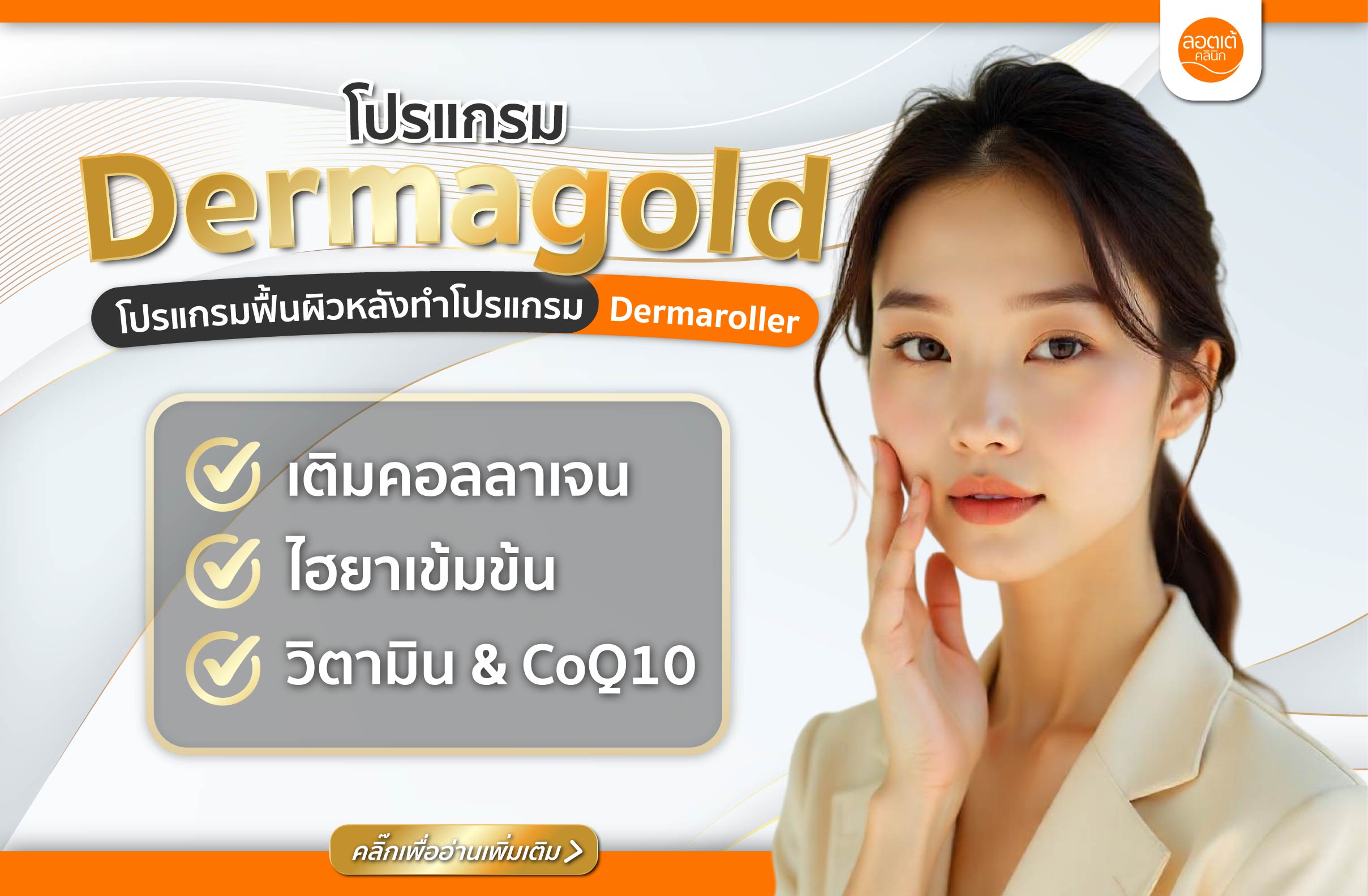 โปรแกรมทรีทเมนต์หน้าใส Dermagold คือทรีทเมนต์ที่ออกแบบมาเพื่อเสริมกระบวนการฟื้นตัวของผิวอย่างอ่อนโยนและครอบคลุม โดยเน้นการเติมสารบำรุงที่จำเป็นต่อผิวในแต่ละขั้นตอน ทั้งวิตามิน คอลลาเจน ไฮยาลูรอน และสารต้านอนุมูลอิสระ ด้วยกระบวนการดูแลผิวทั้งหมด 12 ขั้นตอน ได้แก่