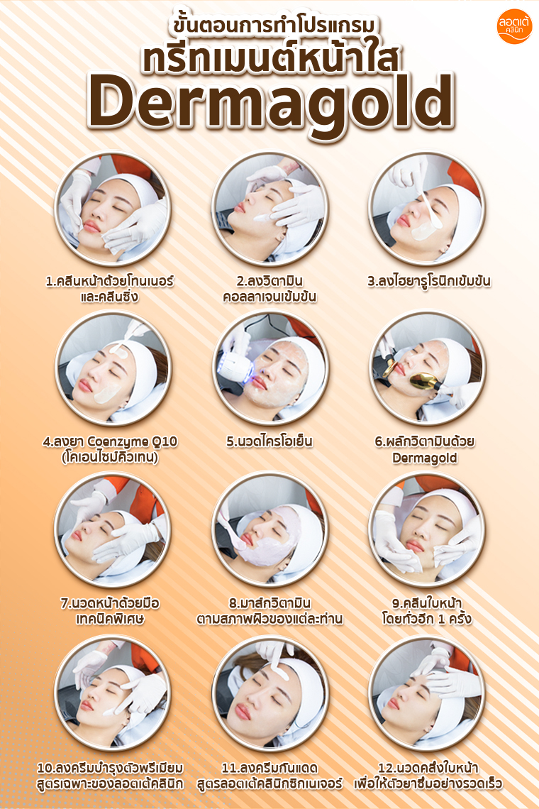 ขั้นตอนการทำโปรแกรม ทรีทเมนต์หน้าใส Dermagold มีทั้งหมด 12 ขั้นตอน