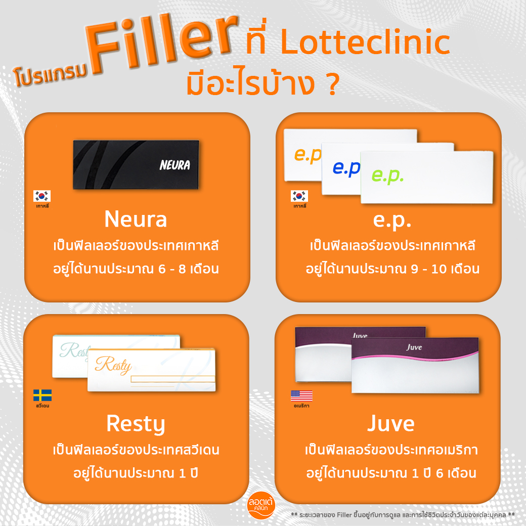 เพราะที่ลอตเต้คลินิกเรามีสารไฮยาลูโรนิกแอซิดให้เลือกใช้หลายแบบ ไม่ว่าจะเป็นสารไฮยาลูโรนิกแอซิดที่มีเนื้อแข็ง หรือเนื้ออ่อน หรือเป็นของประเทศเกาหลี สวีเดน หรือจะของอเมริกาที่ลอตเต้คลินิกเราก็มีให้เลือกเช่นกัน