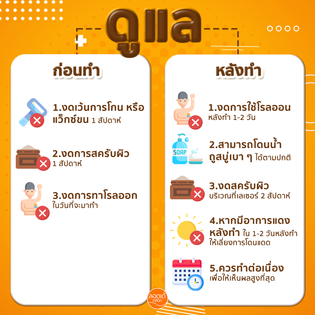 1. งดการใช้โรลออน หลังทำ 1 - 2 วัน